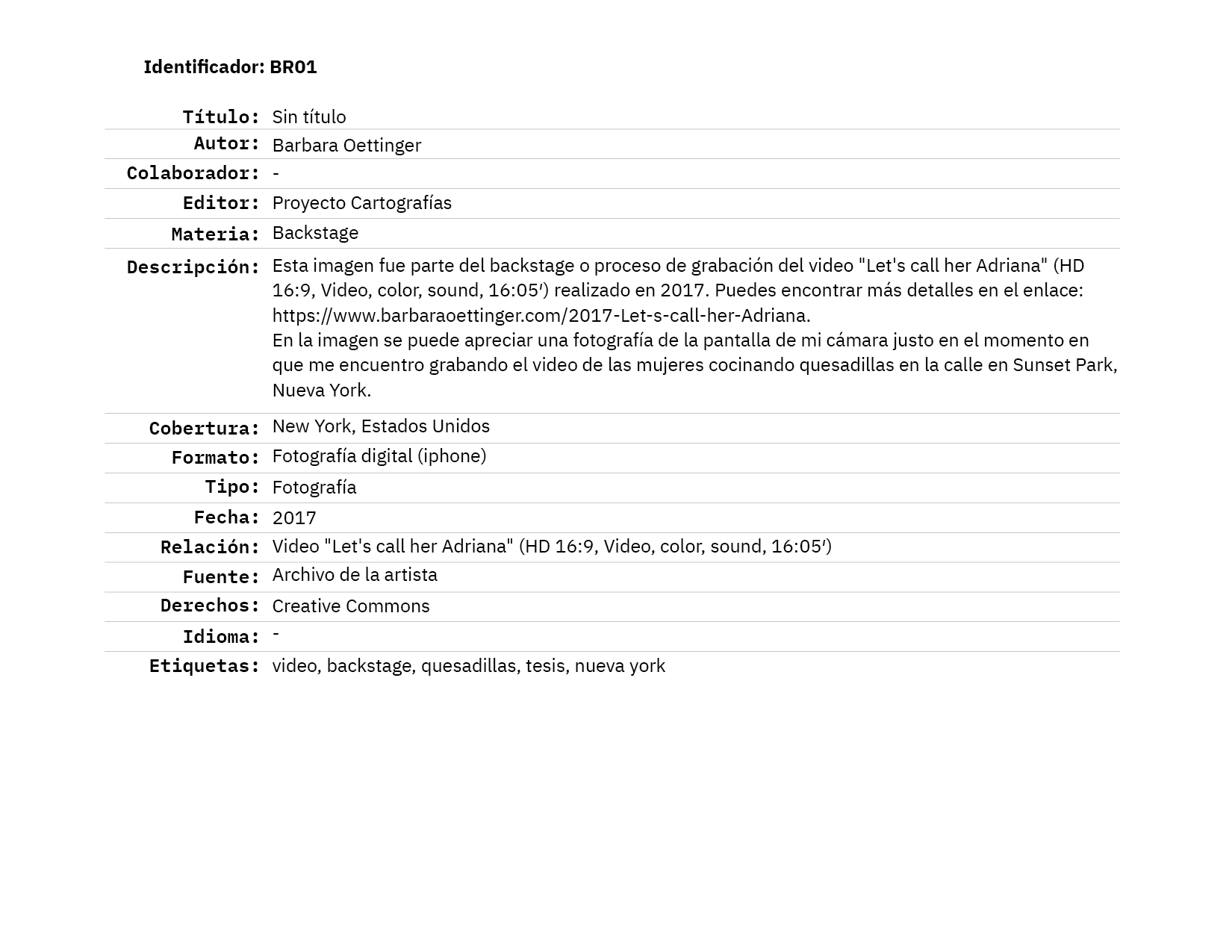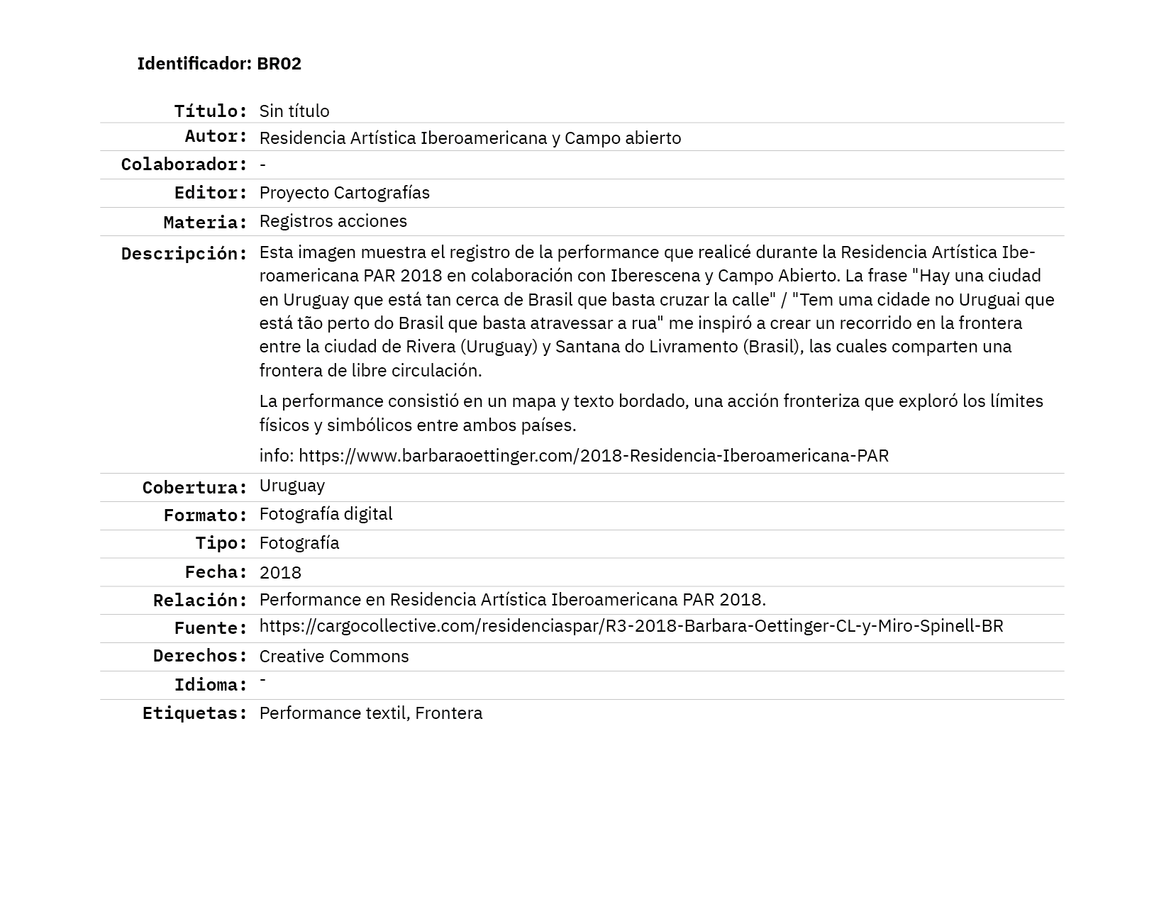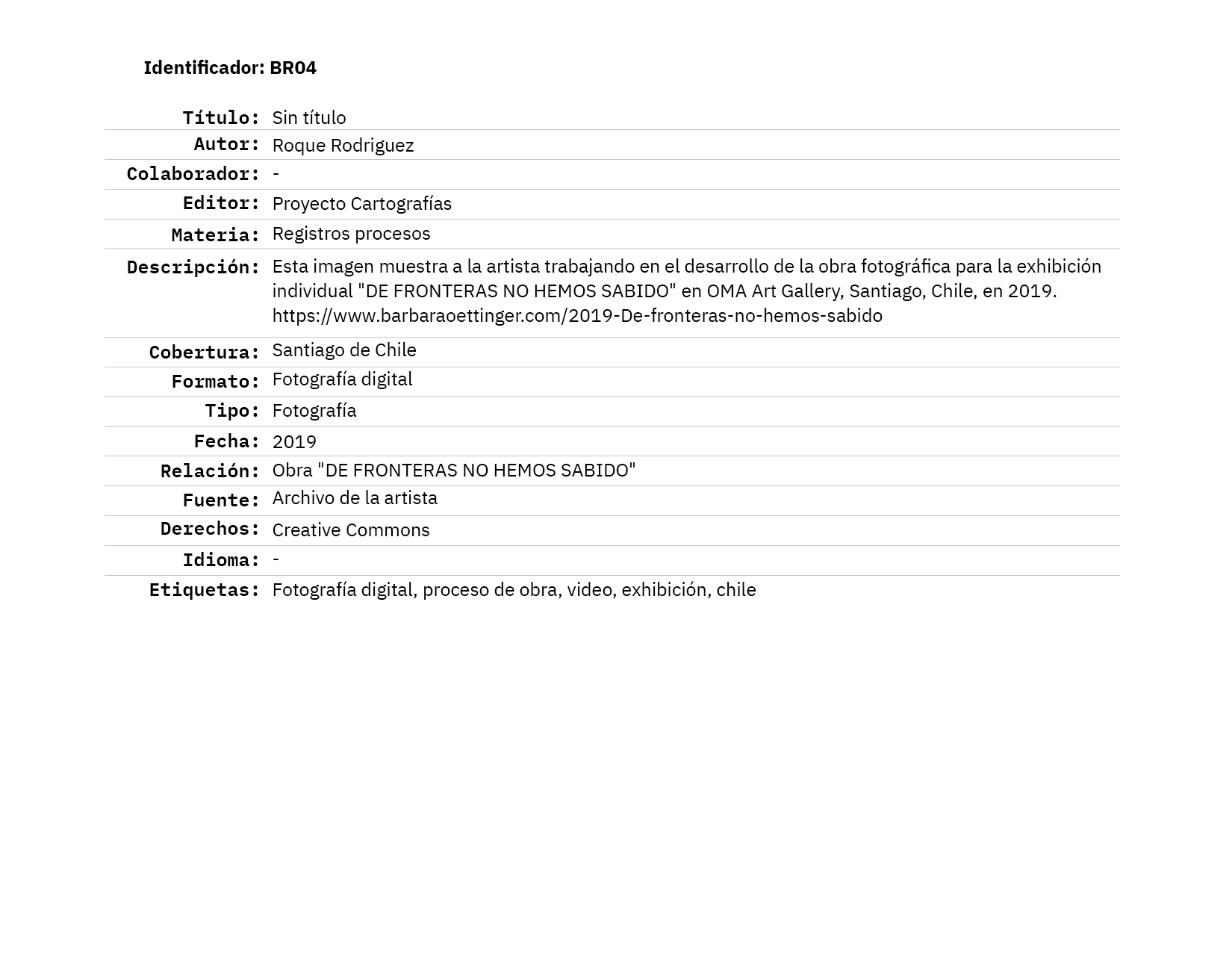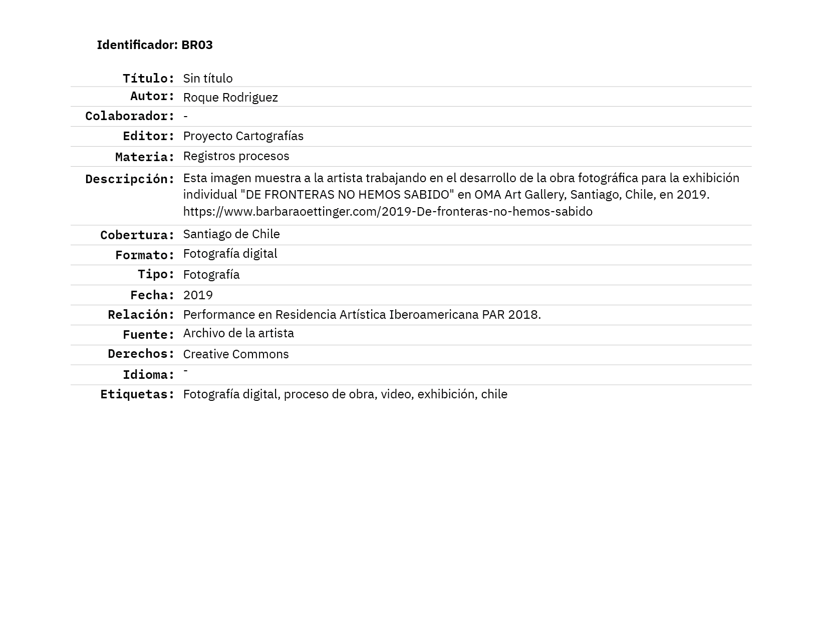 Barbara Oettinger es licenciada en Artes por la Universidad de Chile y máster en Artes por la Pontificia Universidad Católica de Chile. También es egresada del Master of Fine Arts in Integrated Practices del Pratt Institute, Nueva York, Estados Unidos, programa que fue financiado por Becas Chile / CONICYT.